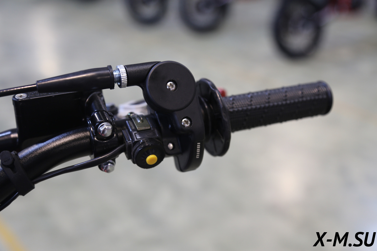 Рукоятка акселератора с коротким ходом: Короткоходная рукоятка акселератора также позволяет самостоятельно регулировать положение троса открытия заслонки карбюратора, чтобы гонщик мог выбрать необходимое для ускорения усилие щетки, наиболее оптимальное для его стиля вождения.