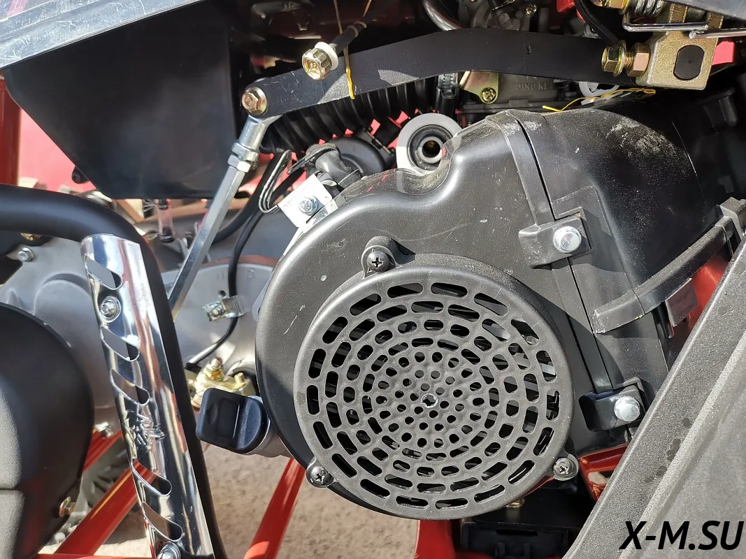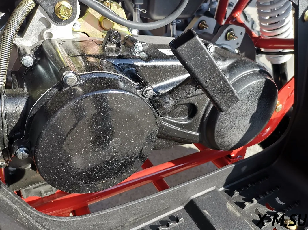 Мотор 200 куб см с антивибрационным валом, собранным из комплектующих TIADA, позволяющий безопасно крутить двигатель до 12000 оборотов, с выходной мощностью 25 л.с. работает в паре с японским карбюратором, настроенным на повышенное давление при подаче топлива, что обеспечивает ровную и стабильную работу двигателя. CDI от BOSCH улучшает сгорание топливной смеси, снимает нагрузку исключая пропуски зажигания. Алюминиевый масляный радиатор, совместно с керамическим напылением поршня защищают мотор от перегрева в любых условиях. Вариатор Malossi SpA – отвечает за разгон и хорошее тяговое усилие, за счет выверенной компоновки грузов, что обеспечивает сцепление на более низких оборотах в отличии от конкурентов.